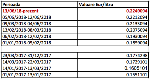 0,2249094 euro/litru. Astfel, la 1000 litri alimentati, valoarea recuperabila va fi de 224 euro.